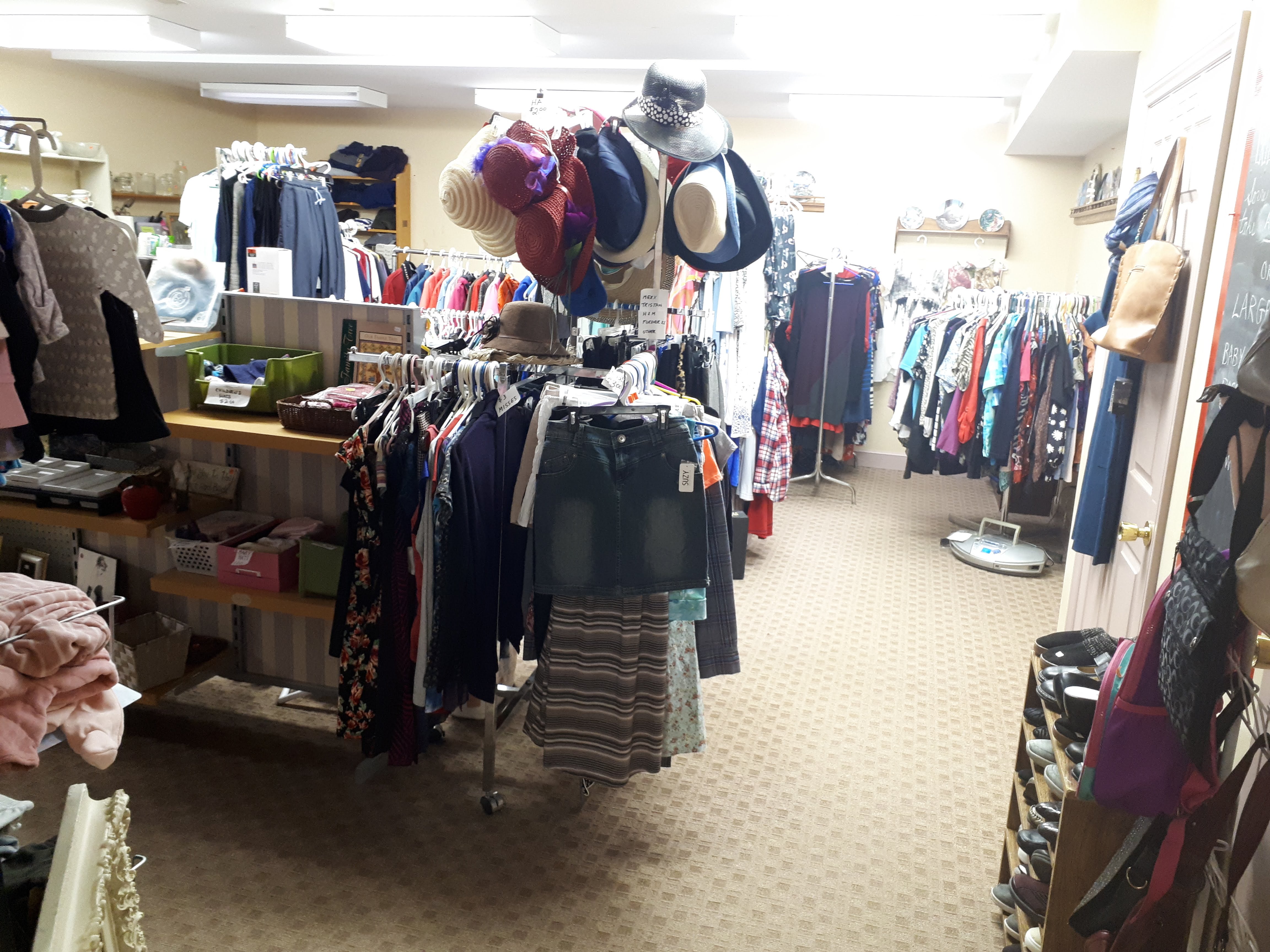 Our shop will continue to proudly support our community. We have sent pyjamas and nightgowns to Bradford Valley; partnered with “The Community Action Program for Children” and provided clothing for all ages free of charge; and donated scarves, hats and sweaters to guests of the Community Meal at past Friday Night Dinners.