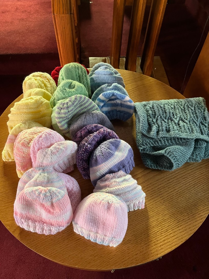 Some of the projects we have been involved with are the fundraising stalls and tables at the church and at other local craft sales. We also make to give away prayer shawls, prayer squares, baby blankets, comfort dolls, newborn beanies, slippers and now we are making baptism blankets and shawls to give to the newly baptized. For more information about our ministry please contact Anne Silvey.